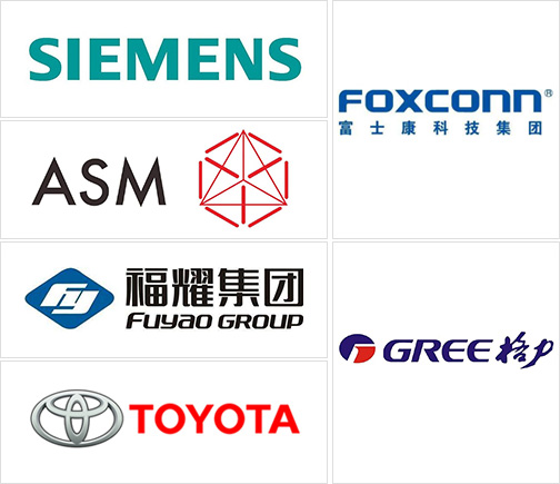眾多國(guó)內(nèi)外知名企業(yè)見證:富士康、格力、美的、赫比、福耀、東風(fēng)、豐田、中國(guó)一汽,住友,松下,格蘭仕、西門子、廣東宏遠(yuǎn)等。